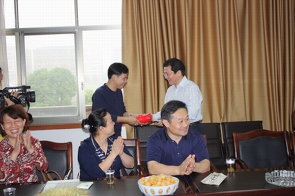 9月10日上午,市教育局局长熊国平来(中)我校看望教师